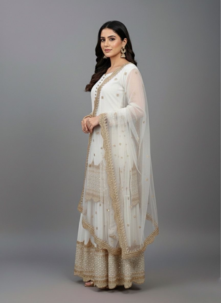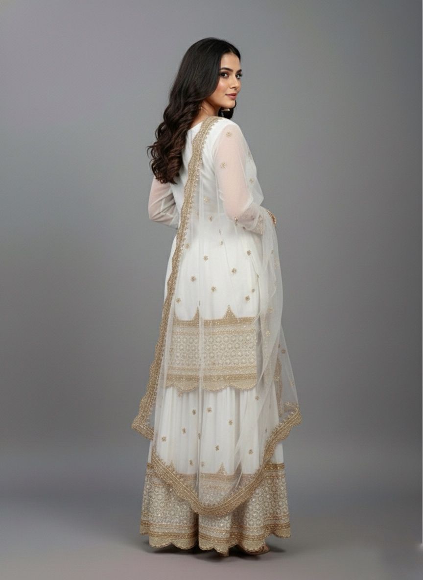 White Faux Georgette Embroider Salwar Suit