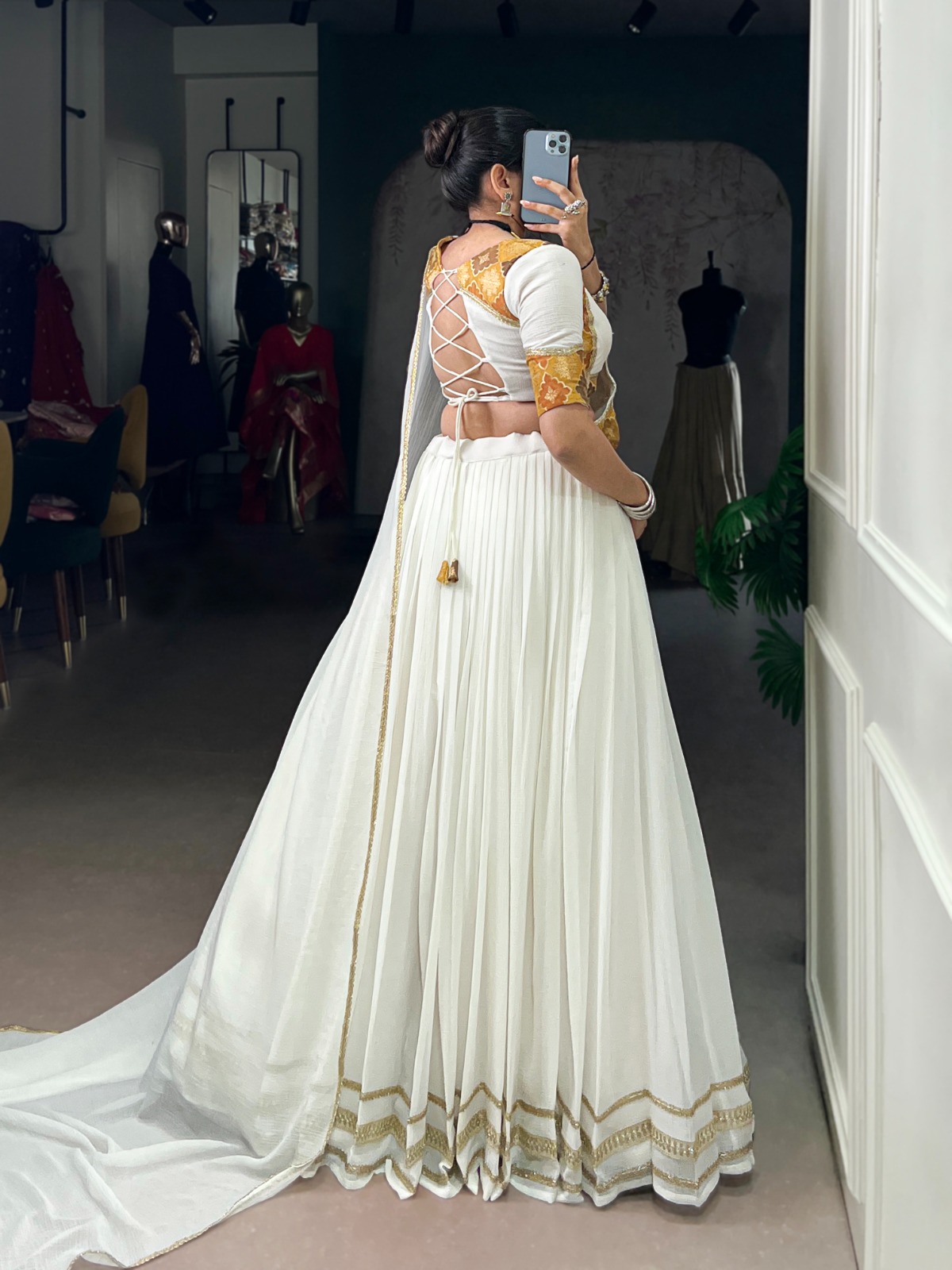 1 Lehenga :: 1 Blouse :: 1 Dupatta :: Drawstring with Zip |