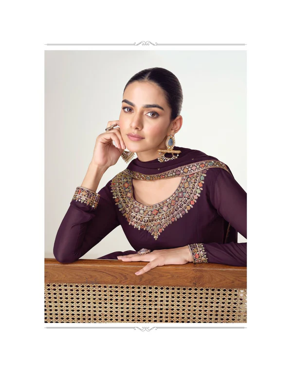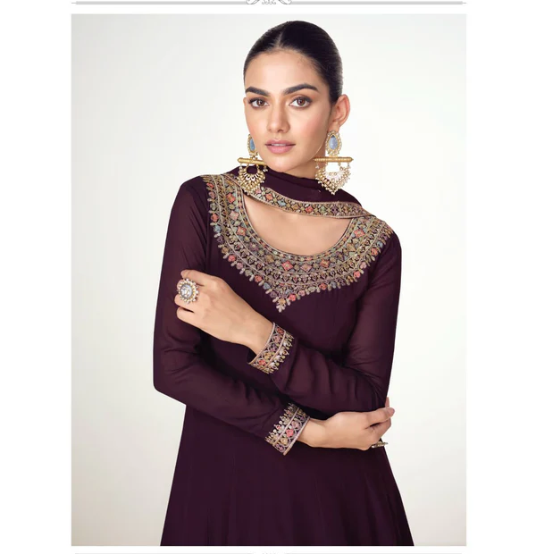 Wine Blooming Georgette Embroidery Work Salwar Suit