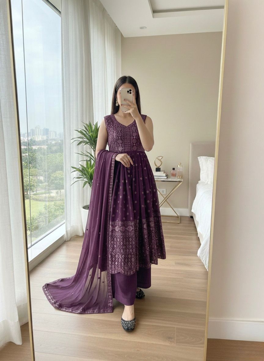 Sky Blue Georgette Embroidery Work Salwar Suit