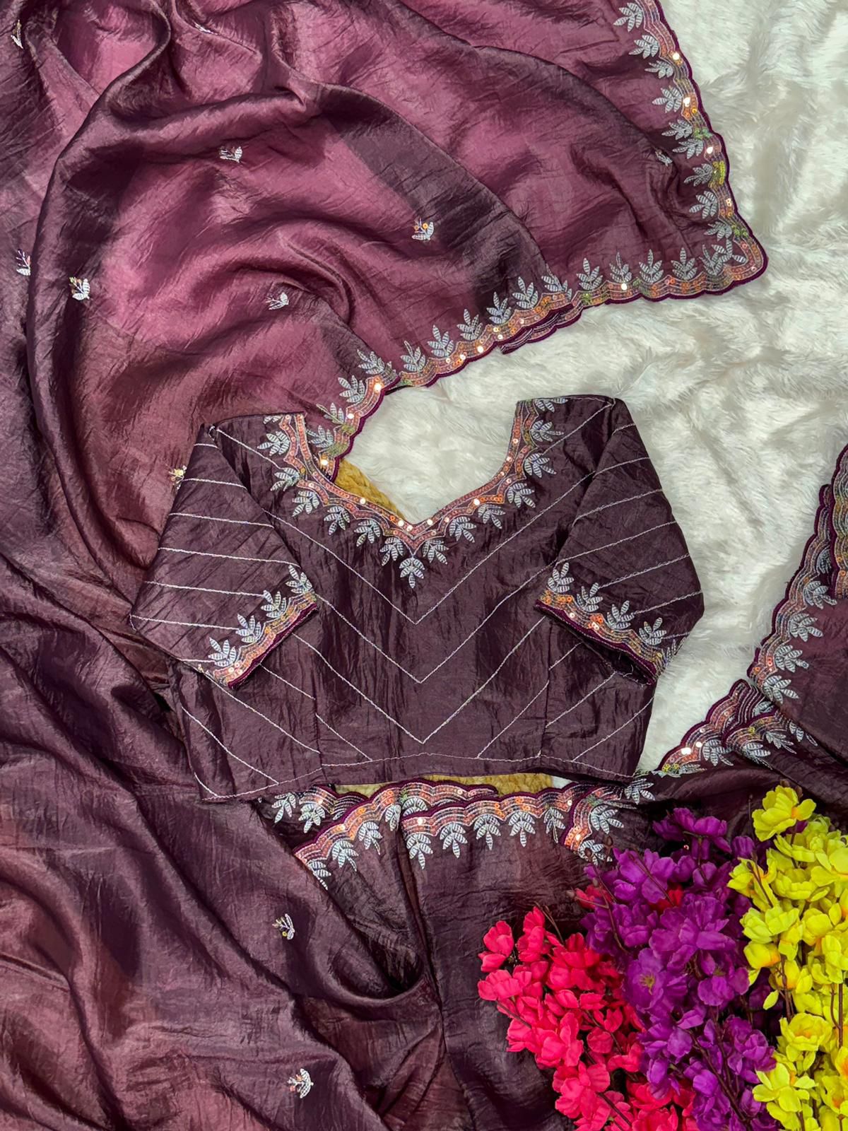 Saree : Gold Crush Jericho Saree Fabric With Heavy Embroidery On Saree With Jari And Sequence Work.