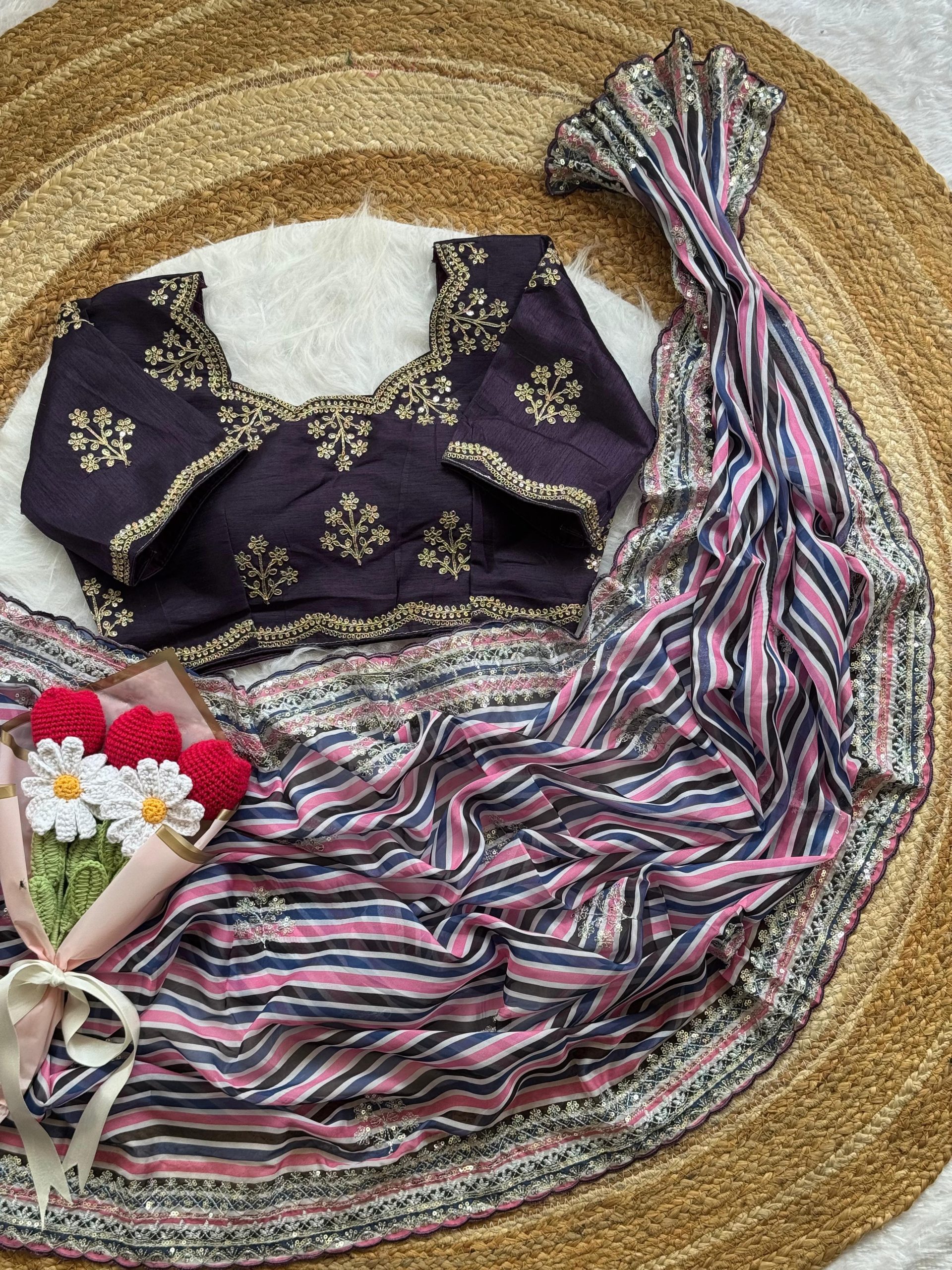 Work : Heavy Embroidery Work Of Sequence And Jari With Arca Border