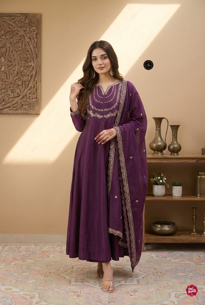 MF 912 Wine Color Vichitra Silk Gown with Sequence Work Designer Work. Get it for ₹1799. Delivery 4-6 Working Days. Shop now. | Bollywood Gowns, Creative Gowns, Designer Gowns, Embroidered Gowns, Gowns, Party Wear Gowns