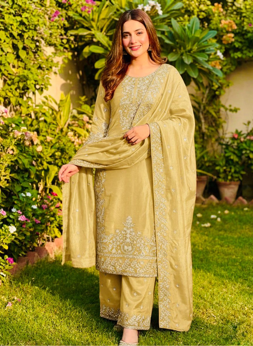 Yellow Organza Silk With Sequence Work Salwar Suit